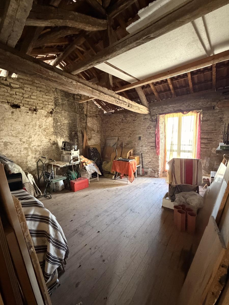 A l’Etage: deux chambres et des toilettes ainsi qu’un grenier de 33 m² aménageable au deuxième étage de l’habitation.