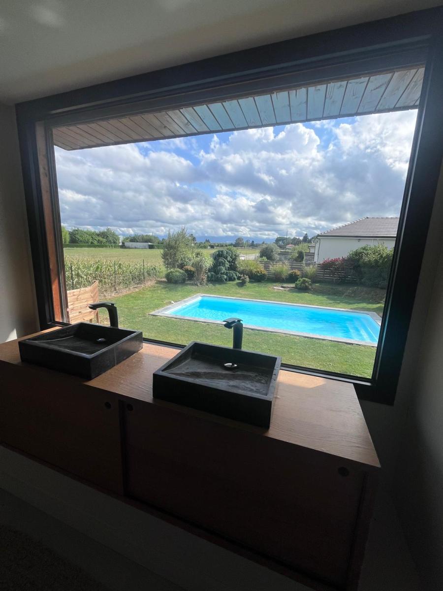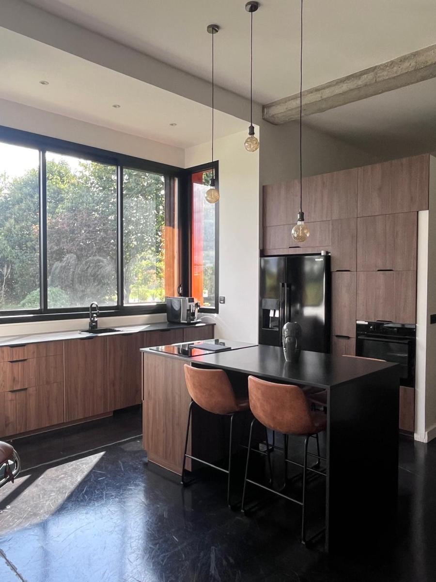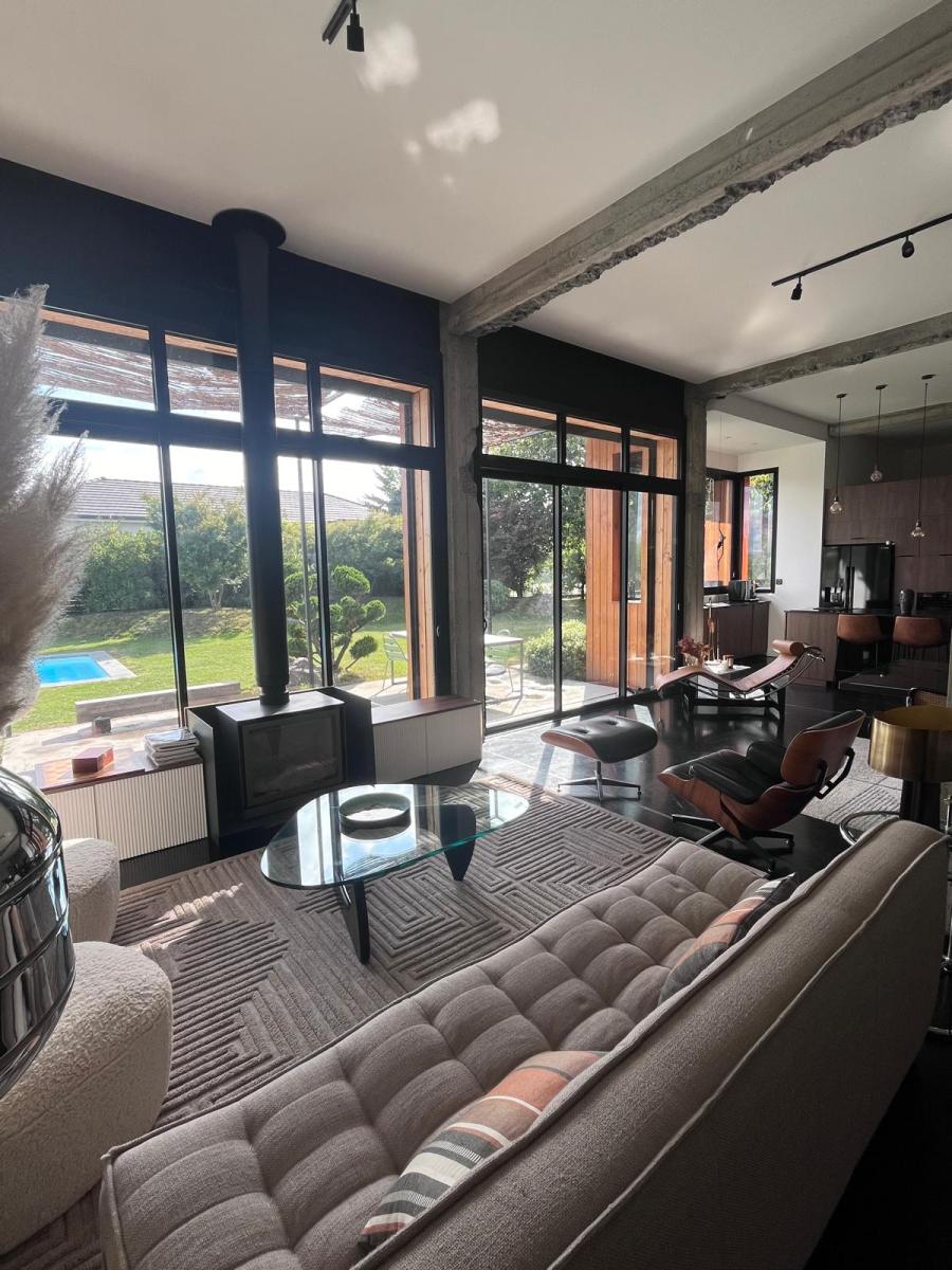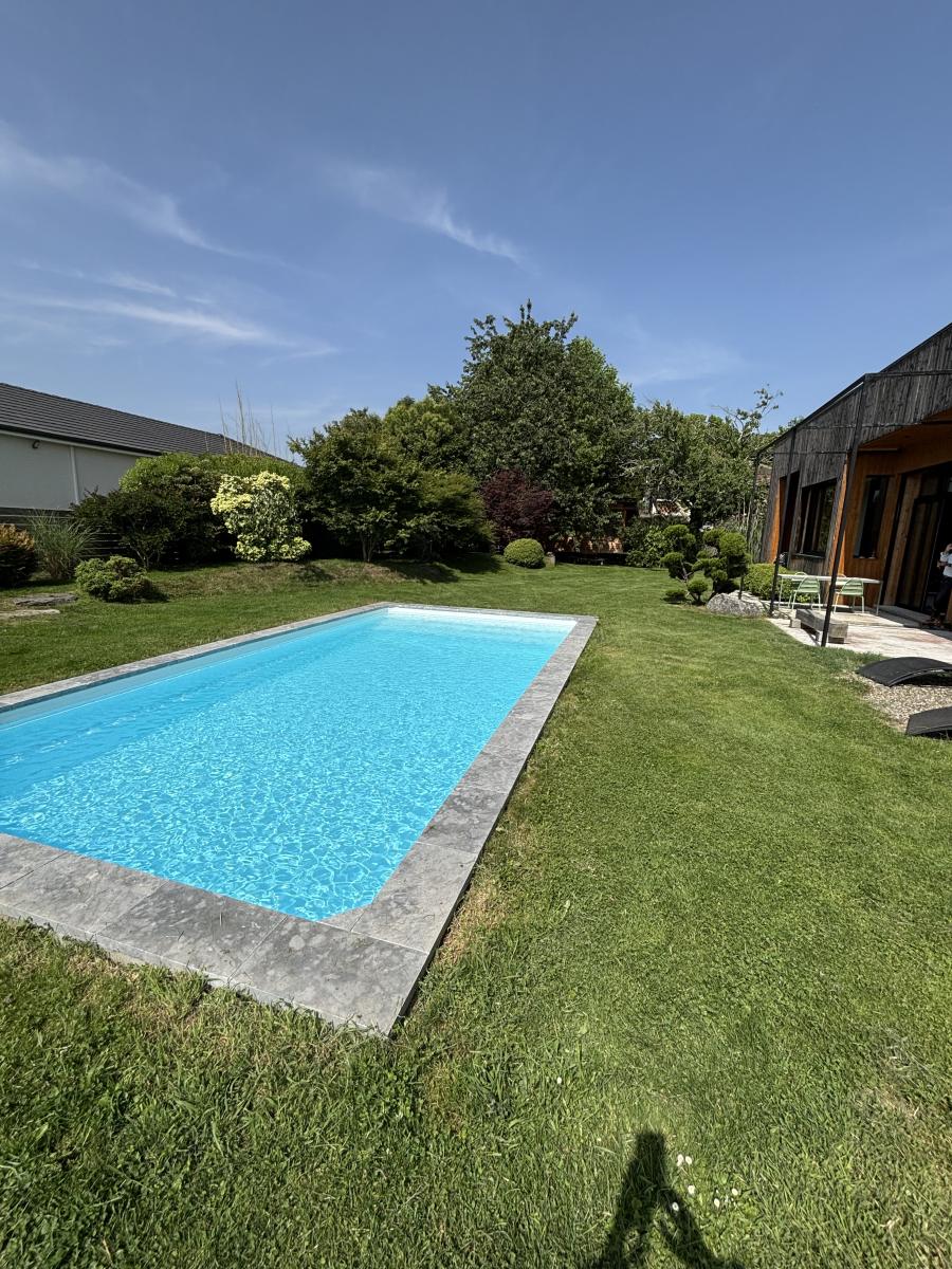 La maison est exposée sud avec vue sur les Pyrénées et offre une magnifique luminosité grâce à ses grandes baies vitrées.