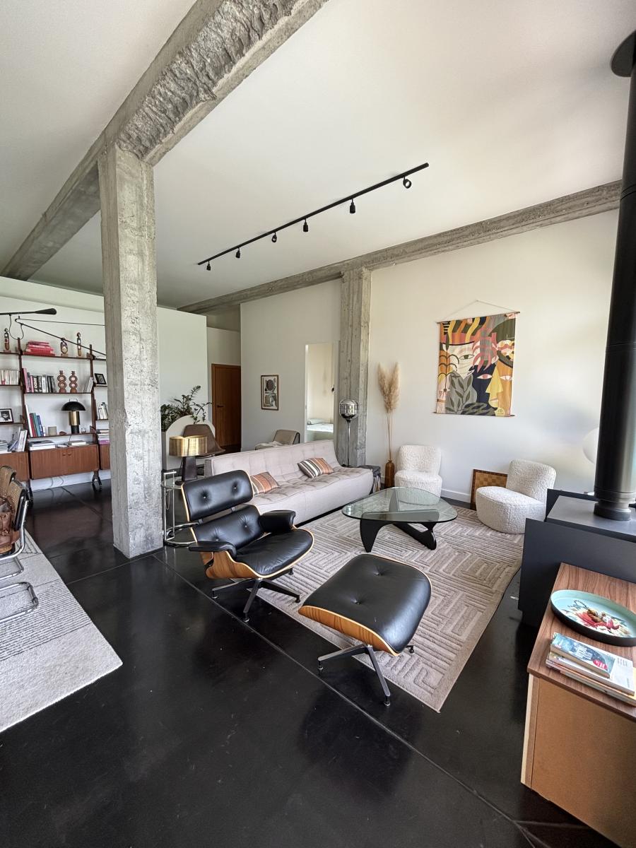 Une pièce à vivre de 60 m²avec de grandes baies vitrées ainsi qu’une belle hauteur sous plafond.